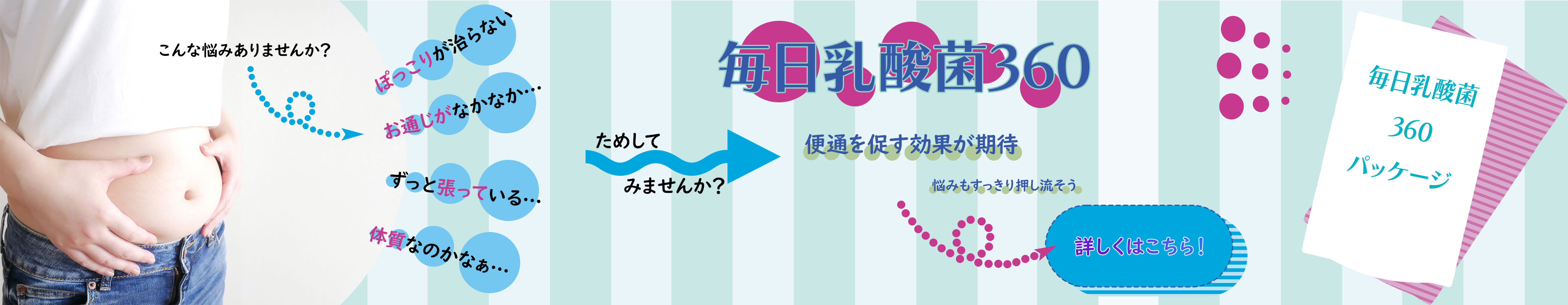 ・腸活バナーについて…腸活をしている方、始めたい方、お腹のポッコリが気になる方をターゲットに設定しました。できるだけ爽やかに、ポップなイメージで作成しました。